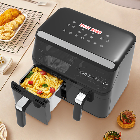8l Touchscreen Dual Air Friteuse Oven Rvs Huishoudelijke Elektrische Friteuse Met 2 Onafhankelijke Manden